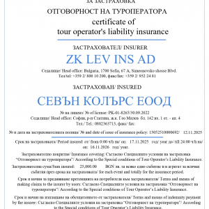 Севън Колърс ЕООД е лицензиран Туроператор по полица РК-01-8265.
